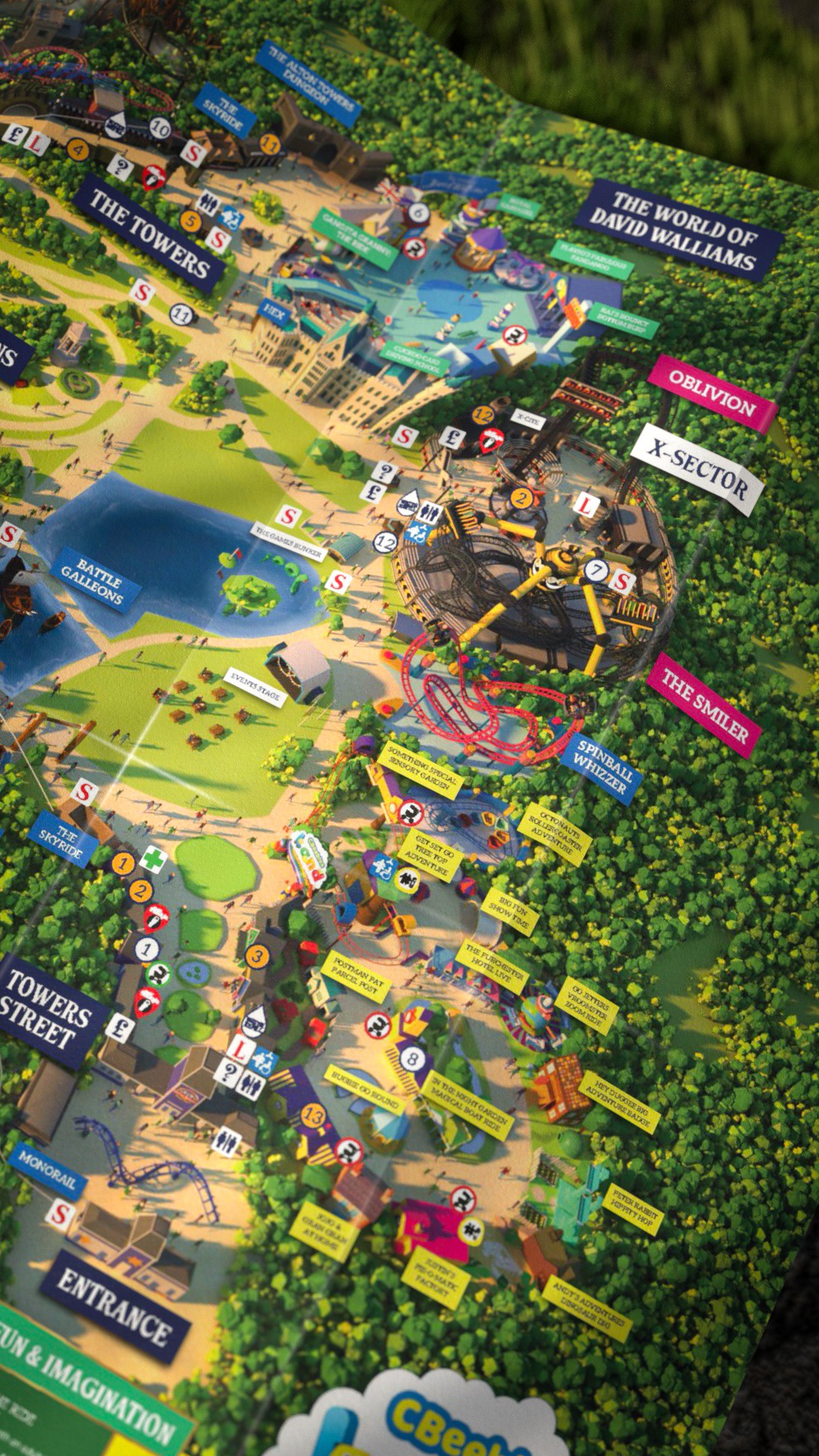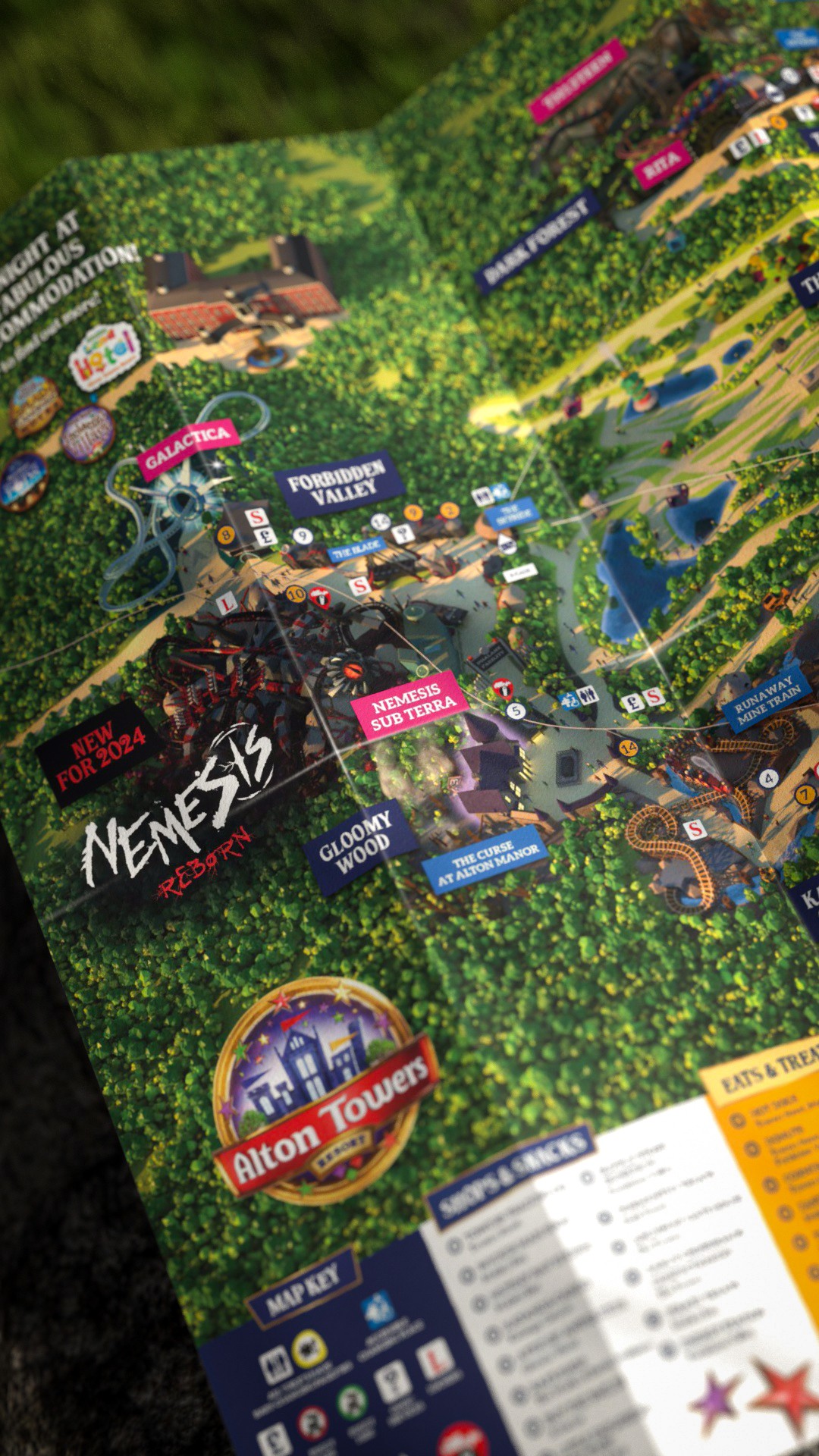 The world’s first fully 3D rendered theme park map. Tasked with revamping the Resort Map with a completely fresh 3D style whilst enhancing navigation and pathfinding, merging precise Ordnance Survey data with on-site shots to portray each attraction vividly. My goal was to maintain the unique atmosphere of the park whilst improving navigation and path clarity through the cleaner style.